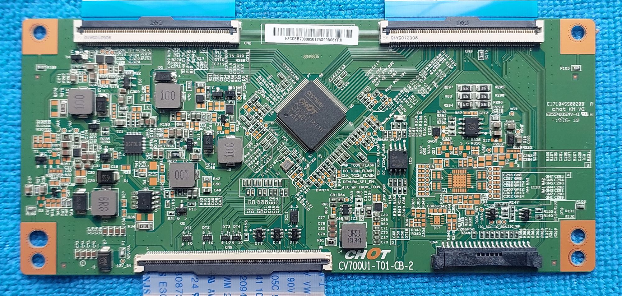 CV700U1-T01-CB-2 — это высокопроизводительная плата тайминг-контроллера (T-con), предназначенная для управления ЖК-матрицами сверхвысокой четкости (4K UHD) больших диагоналей. Плата обеспечивает точную синхронизацию сигналов и формирование напряжений, необходимых для корректной работы дешифраторов панели.
